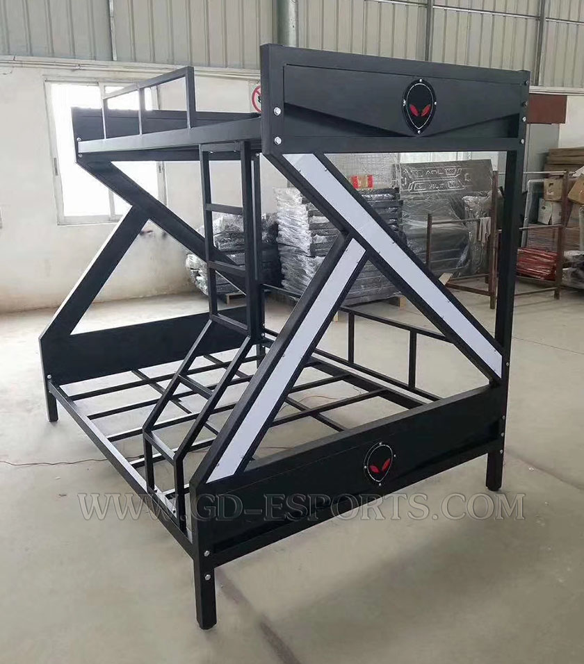 产品摘要:logo可以定制,带LED装饰件,下层1.5米的床,上层1.2米的床。骨架是钢铁结构,专门为电竞酒店设计的,造型时尚,耐用。...